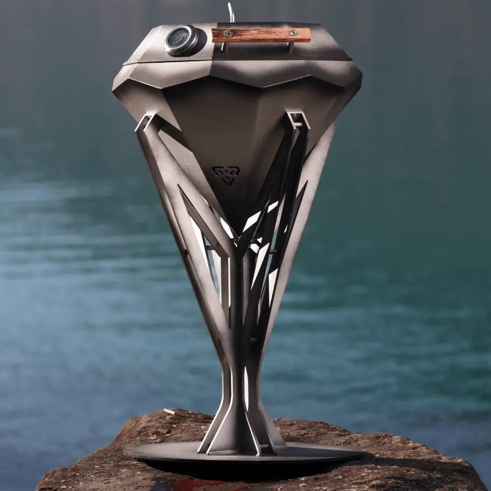 Dieser außergewöhnliche Grill ist ein Blickfang im Garten, durch seine Form ein perfekter Kugelgrill der als Kunstwerk dient. Durch seine Form kann nahezu jedes Gericht zubereitet werden da die Hitze in der Kugel perfekt verteilt wird, auch der Pizzastein findet seinen Platz somit ist auch das Backen eine wahre Freude. Dieses Kunstwerk wird für Gespräche sorgen den sein Design ist einzigartig.